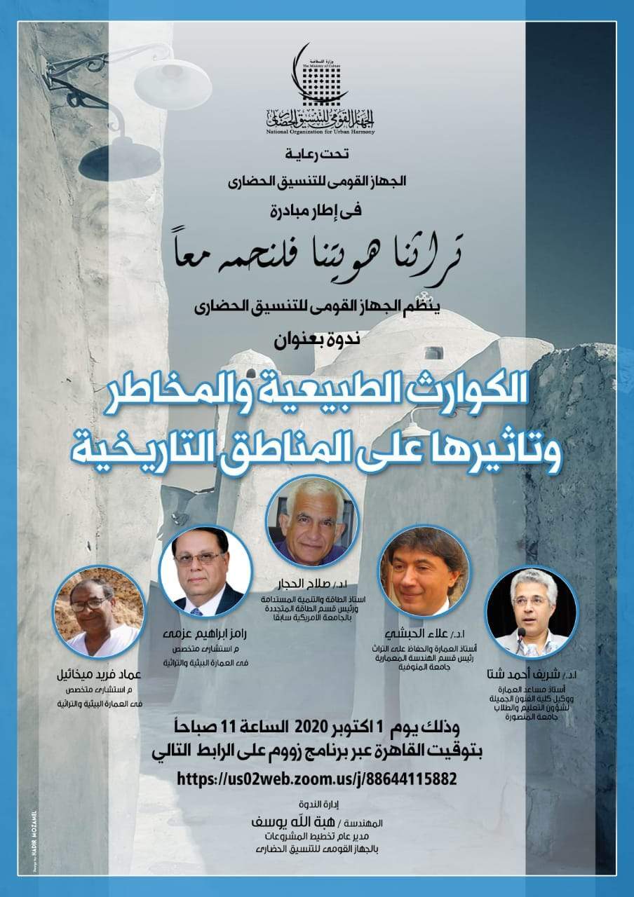 الطبيعية والمخاطر وتأثيرها على المناطق التاريخية"، وتقام الندوة "أون لاين" عبر تطبيق زووم
