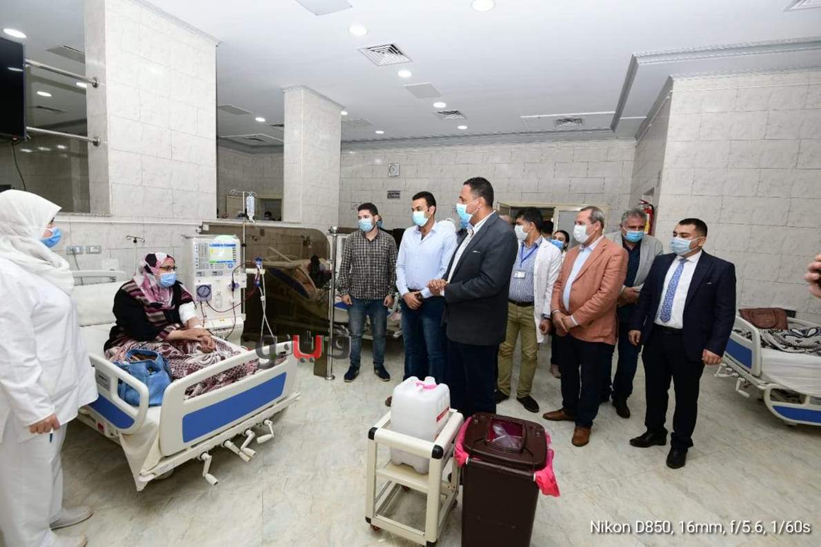 وتضمنت أقسام الأشعة العادية والمقطعية وغرف التعقيم ، والمعالجة لمياه الغسيل الكلوى، وغرف الصيانة للأجهزة ، والمستلزمات، وقسم المسالك ، والتدخلات الكلوية وأماكن انتظار المرضى والمطابخ، وتفقد العيادات الخارجية، كما تفقد المحافظ الأرض الفضاء مساحة 4000 متر والتى من المقرر إقامة مستشفى جديد عليها.