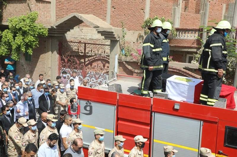 وأدى محافظ المنوفية صلاة الجنازة علي الشهيد بمسجد بجوار المقابر بمسقط رأسه بقرية طه شبرا التابعة لمركز ومدينة قويسنا ثم تقدم جموع المشيعين لتوديع الشهيد فى جنازة عسكرية مهيبة إلي مثواه الأخير لمقابر الأسرة.