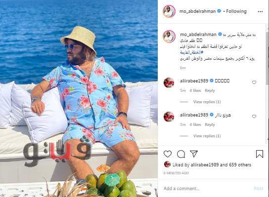 نشر الفنان محمد عبد الرحمن عبر صفحته الشخصية على موقع الصور الشهير "إنستجرام" صورة له على البحر وسخر من ملابسه قائلاً: «ده مش ملاية سرير ده طقم عادي».