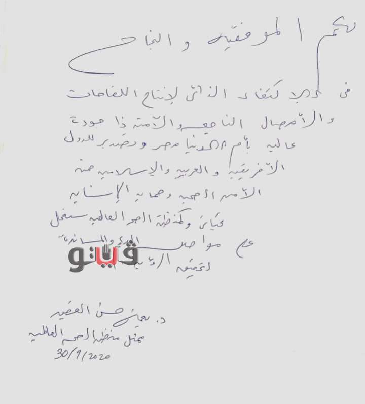 قالت الدكتورة نعيمة حسن القصير، ممثل منظمة الصحة العالمية، في رسالة بخط اليد أثناء زيارتها للشركة القابضة للمستحضرات الحيوية " فاكسيرا": " لكم الموافقة والنجاح في الاكتفاء الذاتي لإنتاج اللقاحات والأمصال ذات جودة عالية بام الدنيا مصر وتصدير للدول الأفريقية والعربية."