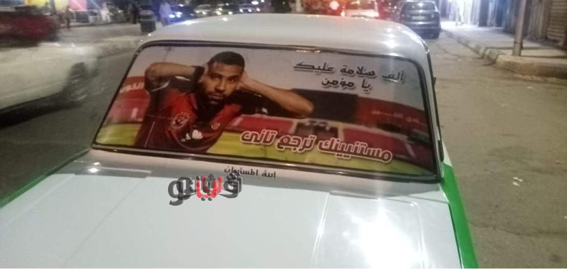 عبر سائق تاكسي بمدينة دمنهور في محافظة البحيرة عن دعمه للاعب النادي الأهلي مؤمن زكريا بوضع صورته علي خلفية سيارته.