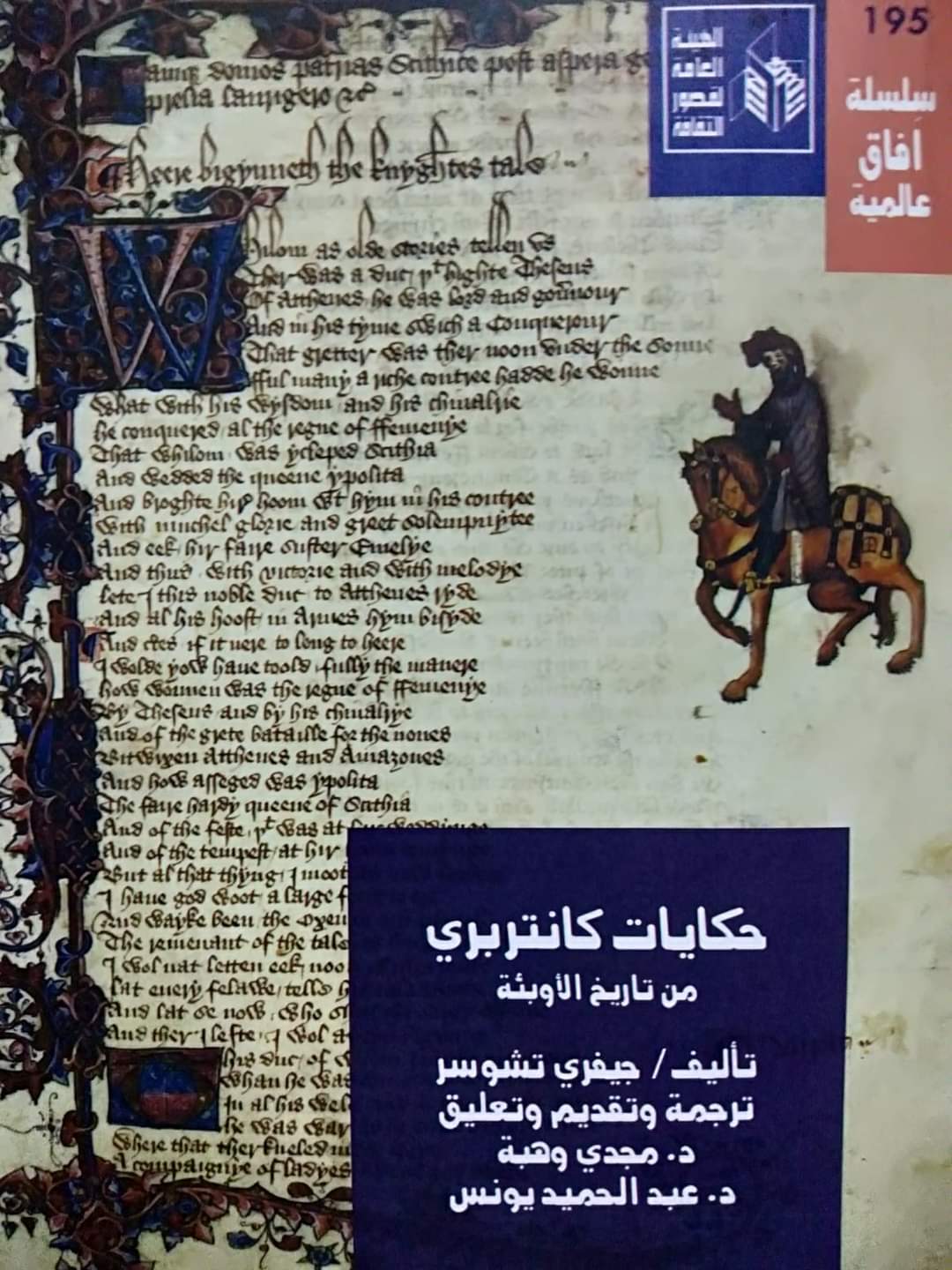 ومن سلسلة آفاق عالمية صدر كل من كتاب "حكايات كانتربري.. من تاريخ الأوبئة" أحد روائع الأدب الإنجليزى من تأليف جيفري تشوسر، ترجمة وتقديم الدكتور مجدى وهبة، والدكتور عبد الحميد يونس.
