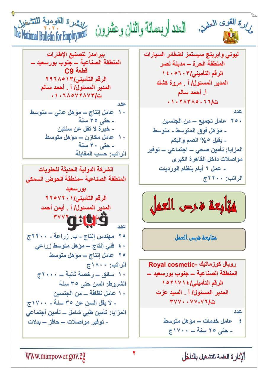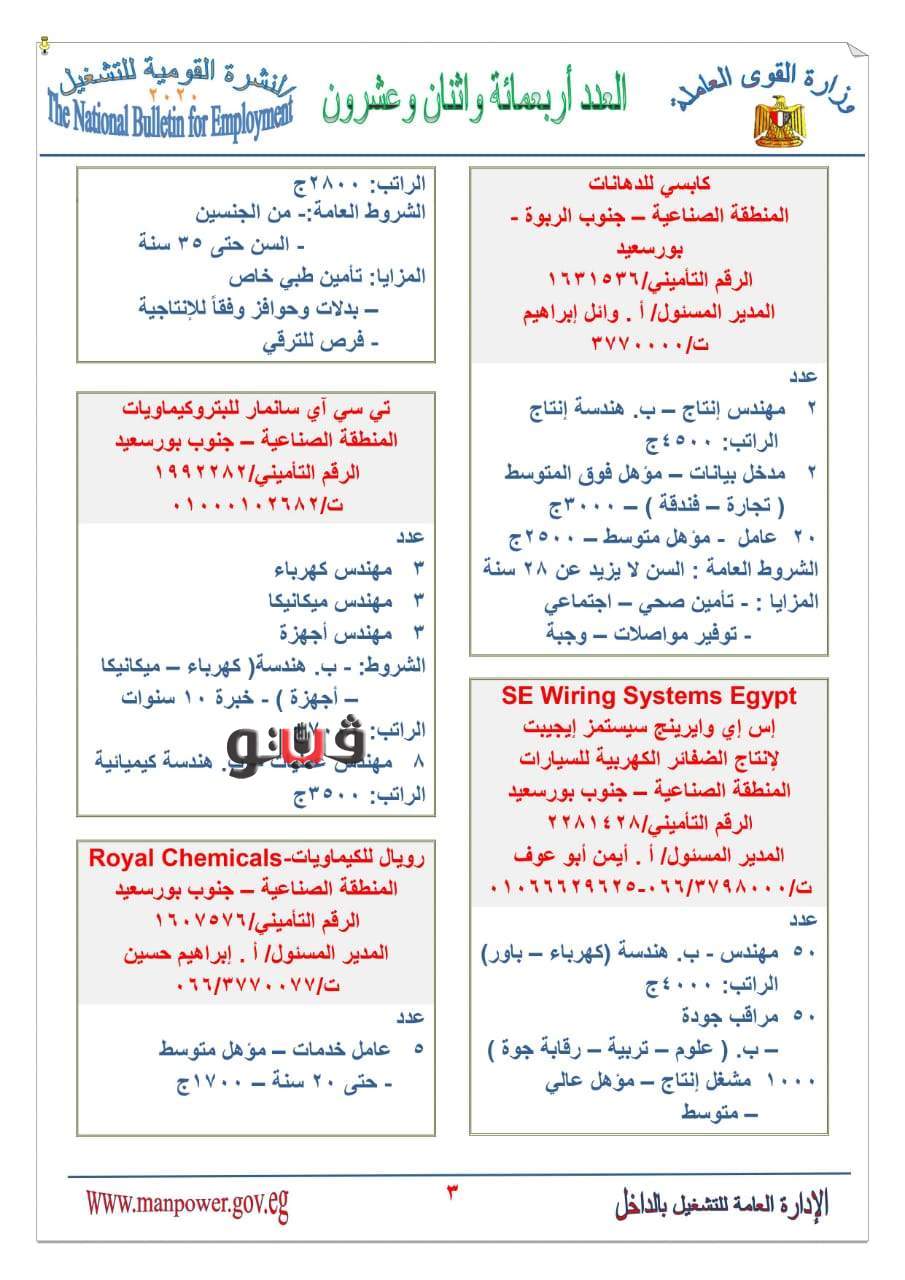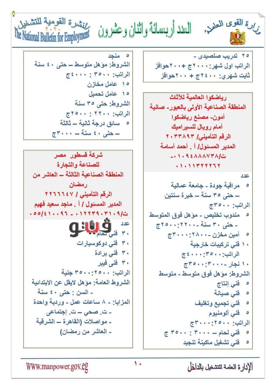 وفيما يلي تفاصيل فرص العمل بأسماء الشركات والعناوين والتليفونات وشروط شغل الوظيفة والمرتب: