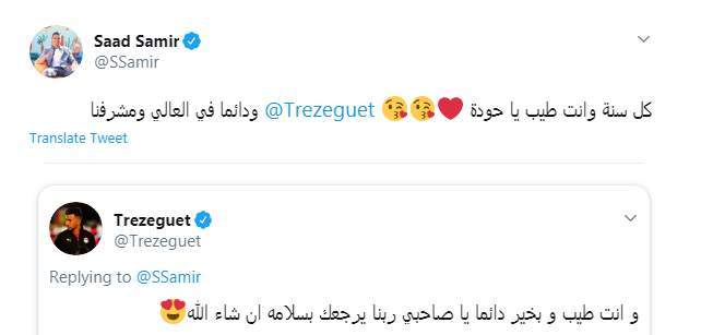 وكتب سعد سمير تغريدة على تويتر "كل سنة وأنت طيب يا حودة @Trezeguet ودائما في العالي ومشرفنا"