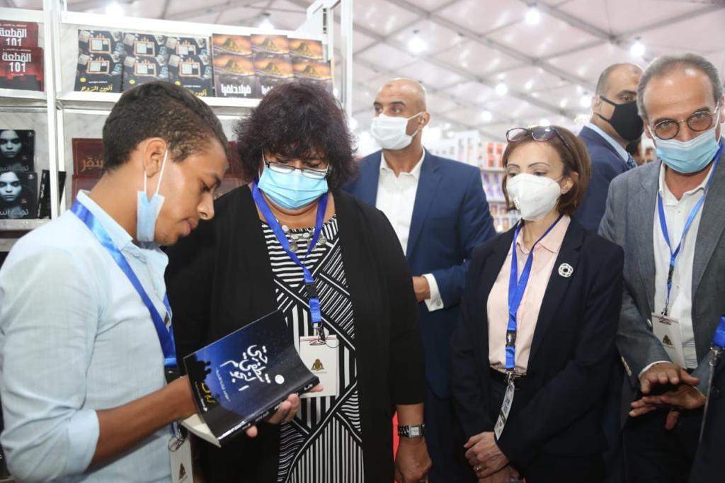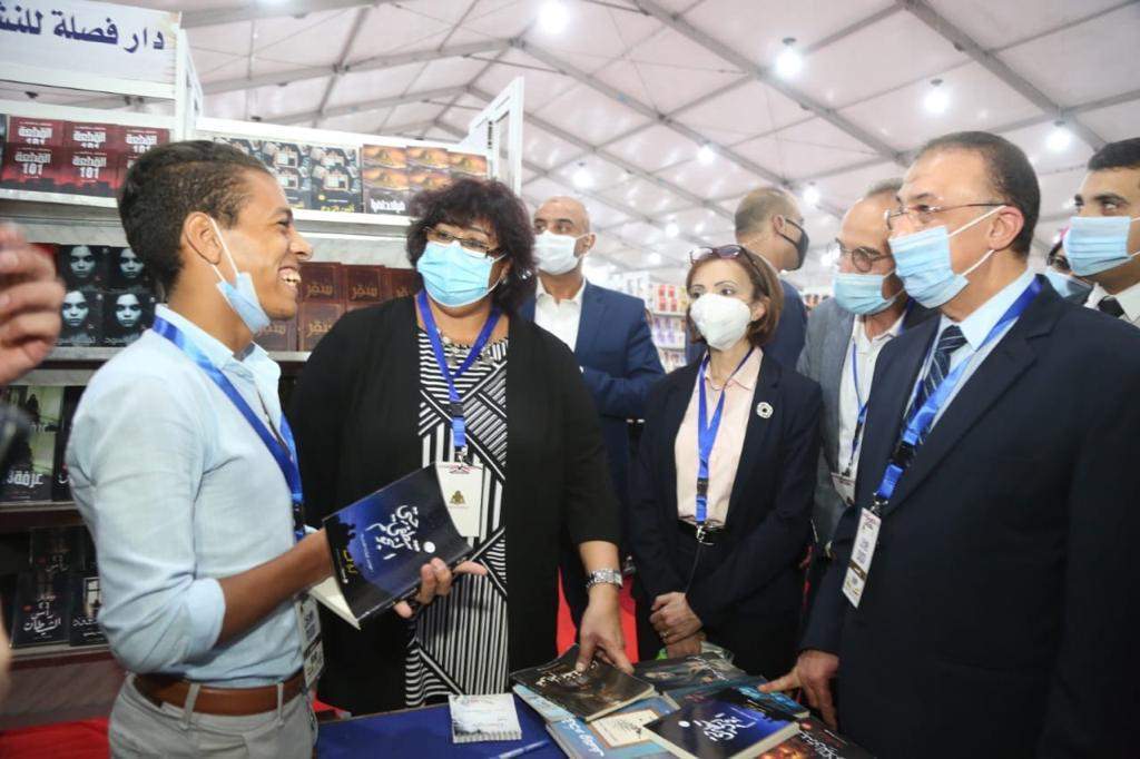 أصغر روائى بمعرض الإسكندرية للكتاب يهدي روايته الجديدة لوزيرة الثقافة