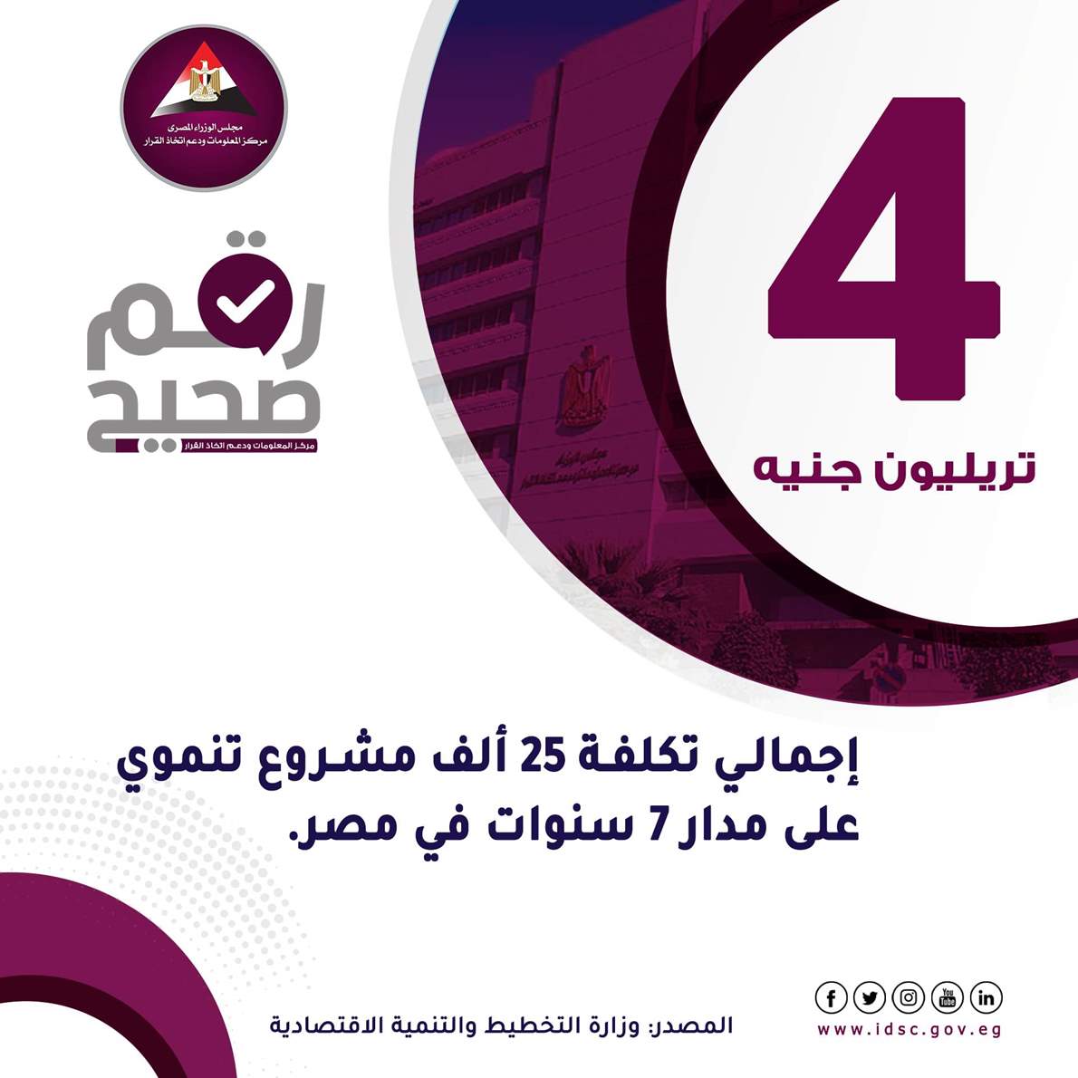 4 تريليونات جنيه تكلفة 25 ألف مشروع تنموي خلال 7 سنوات في مصر | إنفوجراف الجمعة 02/أكتوبر/2020 - 03:09 م 10/2/2020 3:09:08 PM رقم صحيح أحمد رأفت شارك طباعة 18 حجم الخط شارك طباعة مجلس الوزراء وزارة التخطيط مركز المعلومات ودعم اتخاذ القرار رقم صحيح
