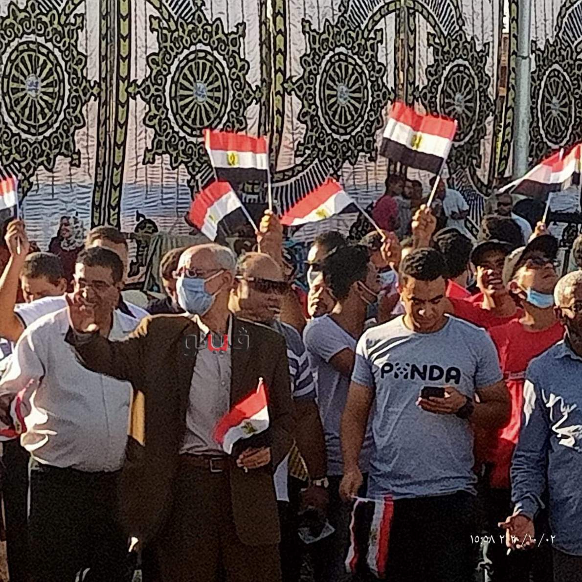 حمل الوافدين إلى منطقة كورنيش المنيا والمحتفلين بذكرى نصر السادس من أكتوبر، علم مصر مرددين هتافات مؤيدة للجيش والشرطة والقيادات السياسية من بينها تحيا مصر بجيشها.. تحيا مصر بشعبها.