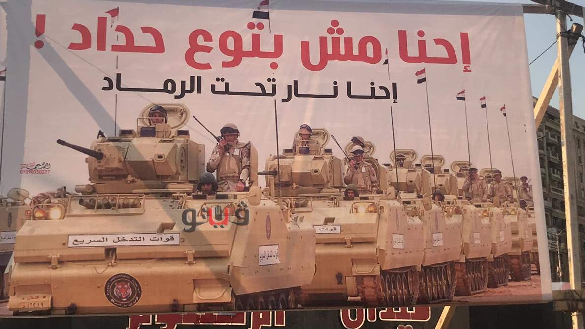 ويشهد الميدان تعزيزات أمنية مكثفة، وتم وضع أنوار وإنشاء منصة وانتشرت الافتات لدعم الجيش المصري تحت شعار: "احنا مش بتوع حداد احنا نار تحت الرماد".