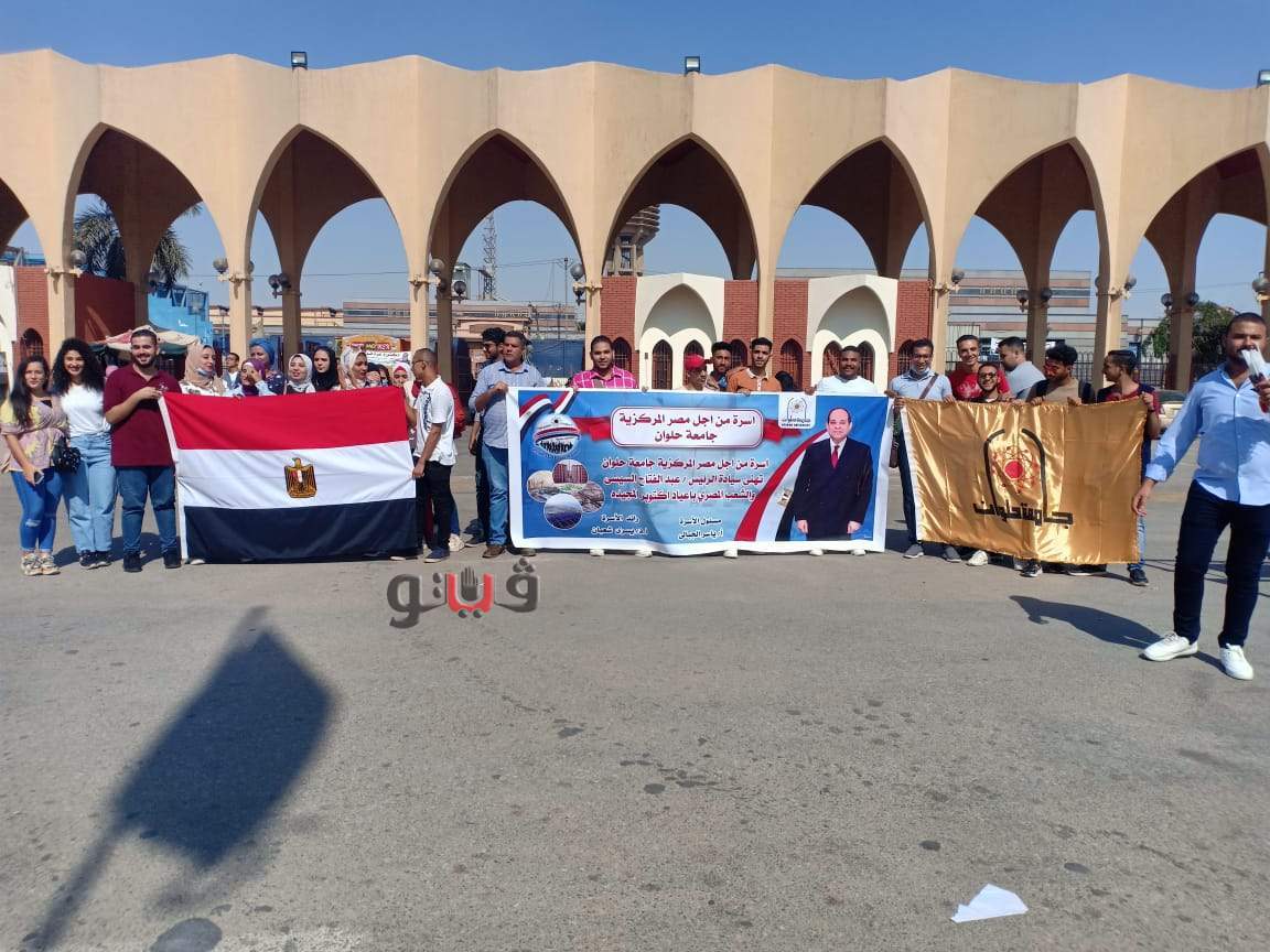 جامعة حلوان تنظم مسيرة مؤيدة للرئيس السيسي تزامنا مع احتفالات أكتوبر | صور