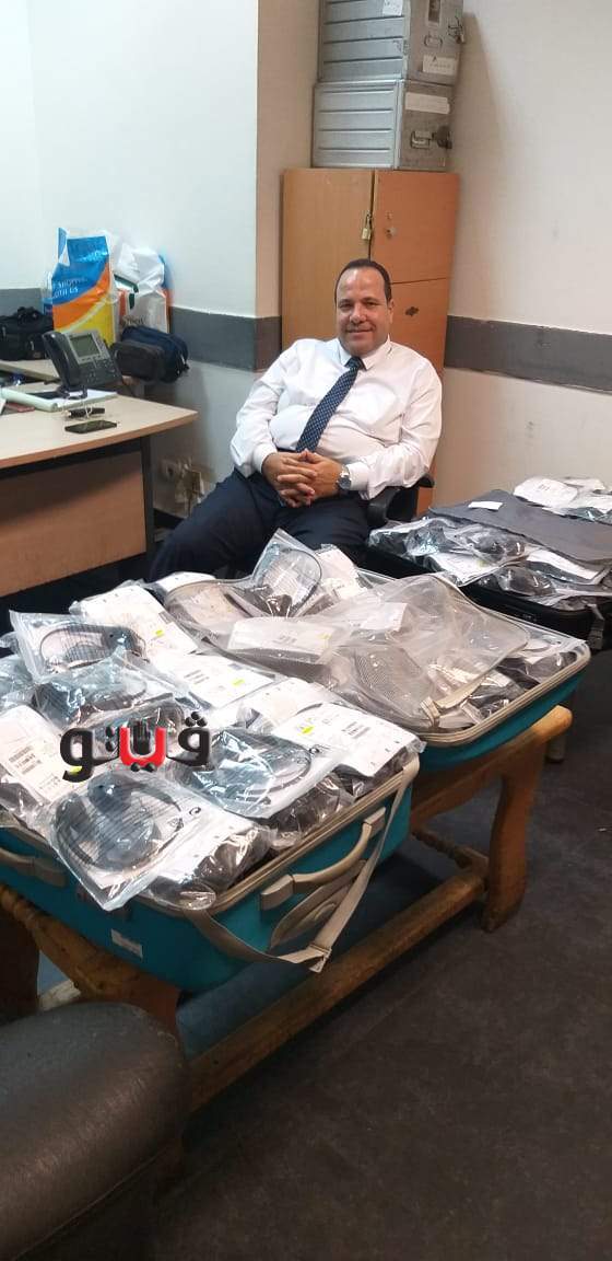وأثناء إنهاء إجراءات تفتيش البضائع والأمتعة الشخصية الواردة من ميناء ضبا السعودى بإدارة الحركة برئاسة فتحى عبدالتواب تم الإشتباه فى مشمول 9 من البيانات الجمركية للأمتعة الشخصية الخاصة بركاب مصريين وبالمعاينة الفعلية تبين وجود 62 ألف كمامة طبية و 306 علبة من الأدوية البشرية والمكملات الغذائية المتنوعة منها سولبادين وفيتامينات و 110 امبول للحقن و 2 جهاز طبي مستعمل و1271 عبوة مستحضرات تجميل عبارة عن كريمات للشعر وتفتيح البشرة وزيوت للشعر ومزيل للعرق و 283 زجاجة شامبو و 250 علبة شاى و 5 زجاجة مشروبات كحولية ومسدس خرسانة و 100كبسولة خاصة بالمسدس مخبأة داخل طرود الأمتعة الشخصية بطريقة يصعب الوصول إليها.