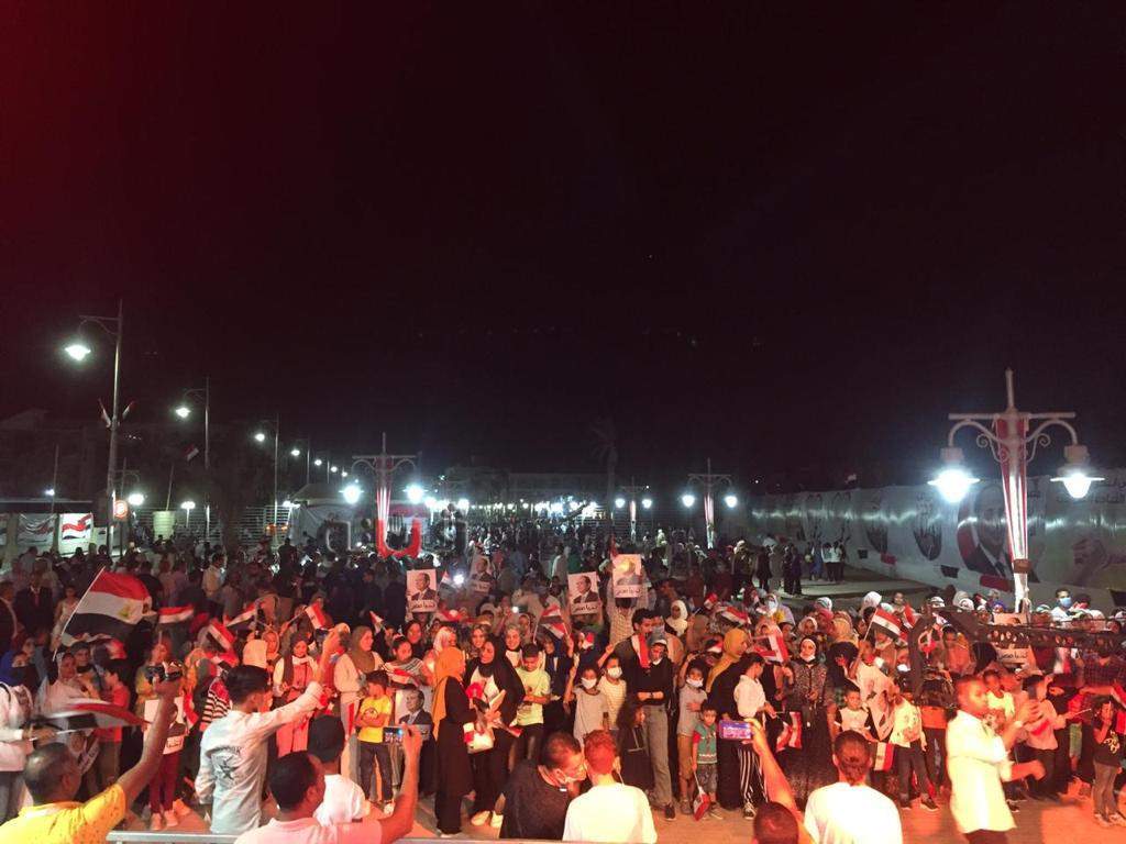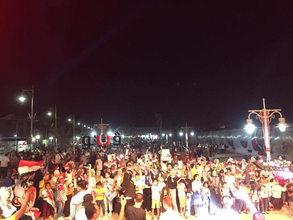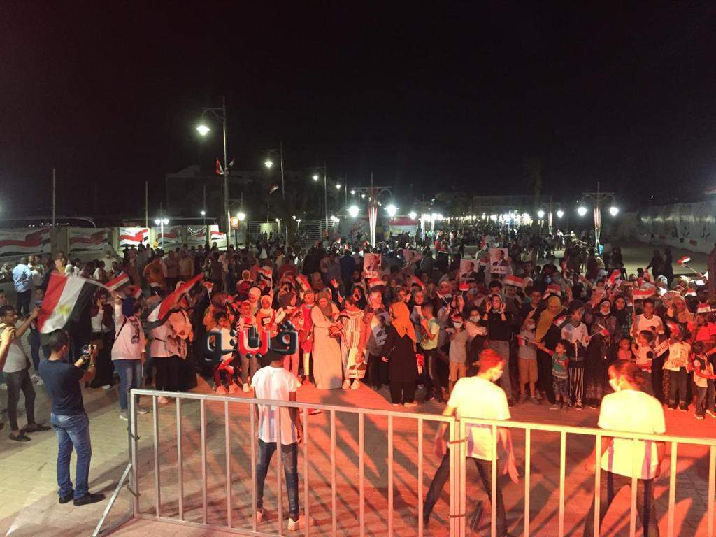 وحمل أهالي المحافظة أعلام مصر، وصور مؤيدة للرئيس عبد الفتاح السيسي رئيس الجمهورية، وسط الأناشيد الوطنية، وهتافات "تحيا مصر".