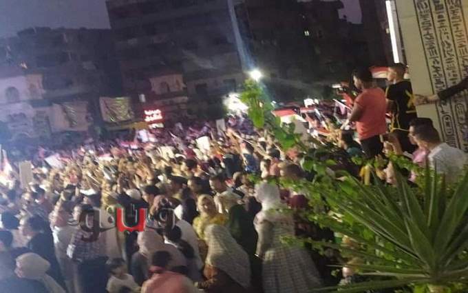 ورفع المواطنون أعلام مصر وصور الرئيس عبد الفتاح السيسي، ورددوا الهتافات احتفالًا بالنصر والهتافات المؤيدة للدولة.