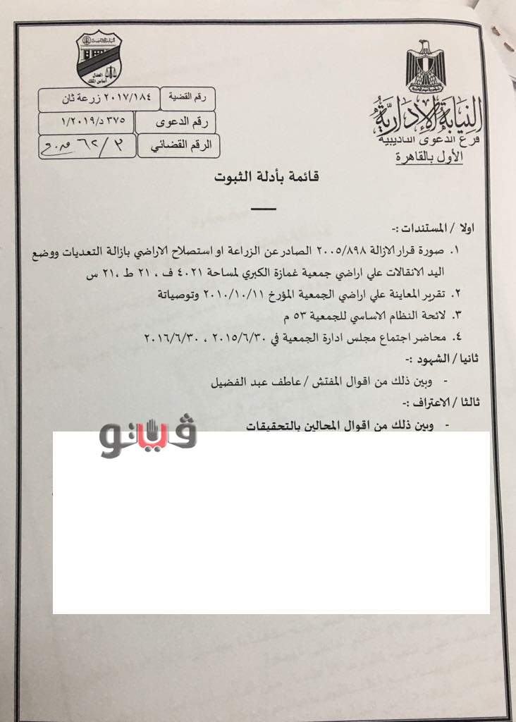 وجاء بأوراق القضية أن علي مجاهد علي، مسئول مناطق الوادي الجديد وبني سويف والفيوم والواحات البحرية والصف وغمازة تقاعس عن إتخاذ الإجراءات اللازمة حيال مخالفات جمعية غمازة الكبرى المتمثلة في عدم السير في الإجراءات اللازمة لفسخ التعاقد، وعدم التصرف في المساحات البور الموجودة بحوزة الجمعية.