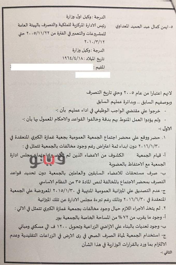 لوزارة الزراعة أحيل على إثرها 5 مسؤولين بينهم 3 وكلاء وزارة للمحاكمة العاجلة بعد