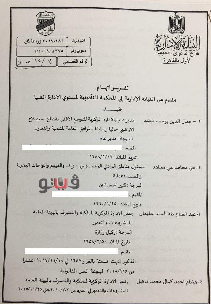 ثبوت قيامهم بتسهيل تحويل 1200 فدان إلى سكني بالجيزة وتعمد تبوير الأراضي
