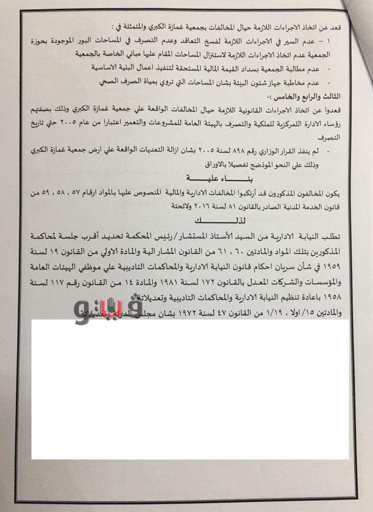 وأكدت النيابة الإدارية عبر تقريرها أن جمال يوسف محمد، مدير عام بالإدارة المركزية للتوسع الأفقي بقطاع استصلاح الأراضي التابع لوزارة الزراعة، لم يتخذ الإجراء اللازم حيال وجود مخالفات بجمعية غمازة الكبرى تتمثل في تعديات بالبناء على الأراضي الزراعية وتحويل 1200 فدان زراعي إلى سكني ومباني.