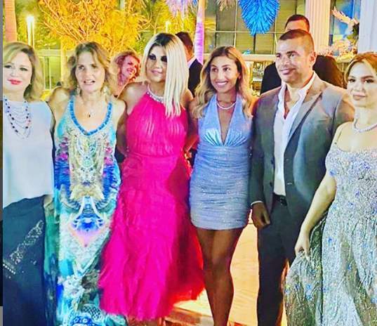 وظهر في الصور كل من النجم عمرو دياب والفنانة دينا الشربيني، ويسرا، لبلبة، وغيرهم.