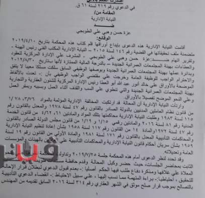 وأستندت المحكمة إلى المذكرتين المقدمتين من عزة حسن وهبى، رئيس الإدارة المركزية للعقود والعطاءات وخالد أنور عبدالله، "الشاكي" للعرض على النائب الأول لرئيس الهيئة بسرد وقائع الشكوى، وأنتهت إلى تغريمها بما يعادل 15 يومًا من أجرها الأساسي الذي كانت تتقاضاه قبل إنتهاء خدمتها.