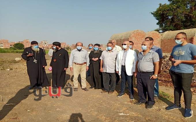 ومعاينة الأرض المتبرع بها لإنشاء مدافن للأخوة الأقباط بالقرية، على مساحة فدان و٤ قراريط.