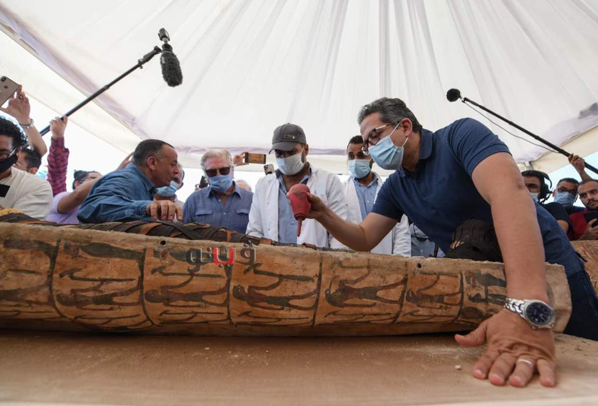 الآثار تعلن أكبر كشف أثري بسقارة.. العثور على 59 تابوتا مغلقا داخل آبار الدفن.. 60 سفيرًا يشاركون في الحدث
