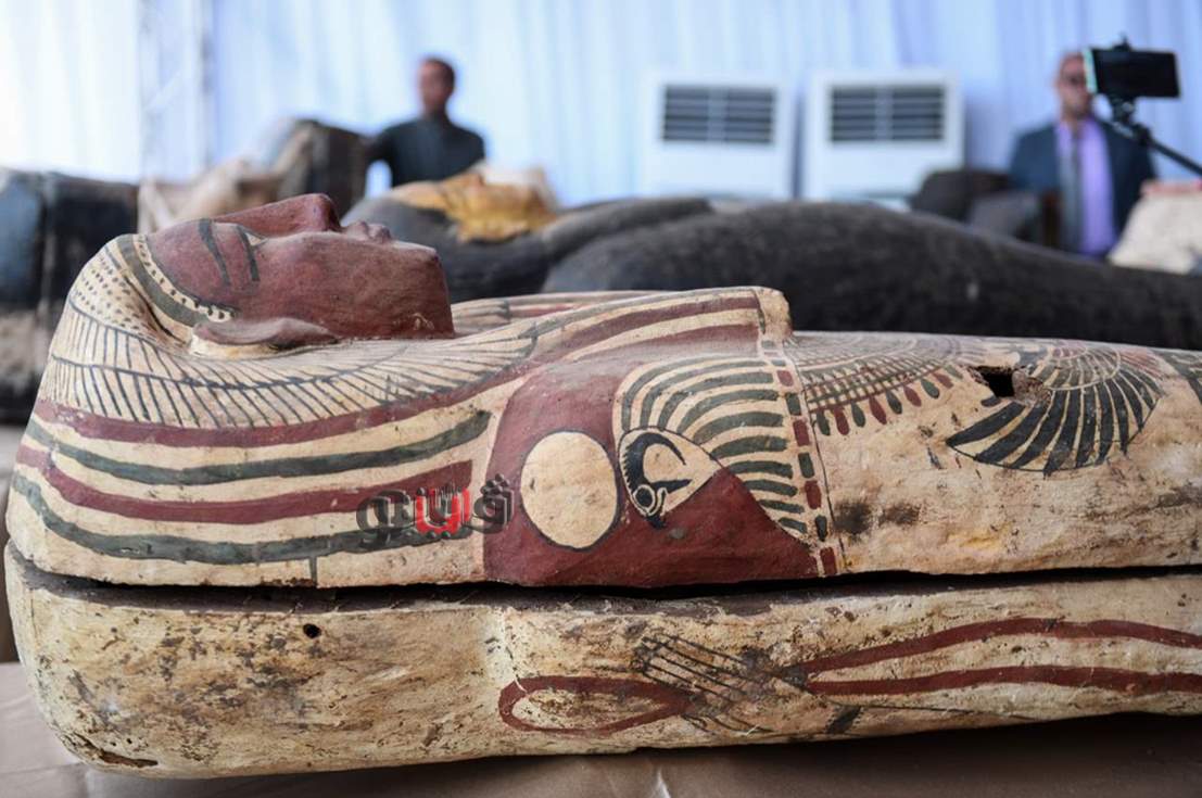 وكشفت البعثة عن ثلاثة آبار للدفن على أعماق مختلفة تتراوح ما بين ١٠ و ١٢ مترا بداخلهم 59 تابوتا خشبيا ملونا مغلقا مرصوصة بعضها فوق البعض، حيث أكد الدكتور العناني، وزير السياحة والآثار، إلى أن الكشف يعتبر حدثا هاما ويبرز تفرد مصر في تنوعها الذي لا تمتلكه كثير من دول العالم.
