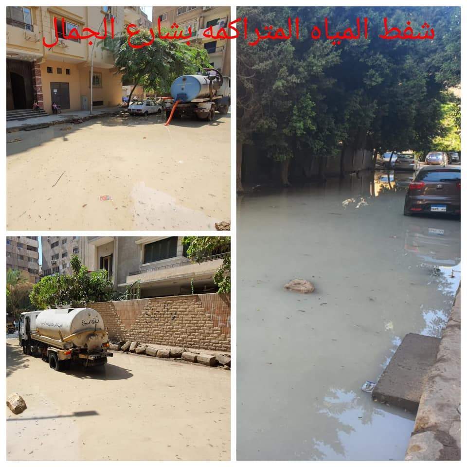 وشملت تلك المجهودات استكمال أعمال تطوير شارع بسام الشريف من أحمد كامل من شارع الهرم وفرد الدقشوم ودقه ورش المياه تمهيدا لرصف الشارع، وإصلاح ماسورة مياه مكسورة ناصية شارع الجمال مع شارع بسام الشريف ورفع المياه المتراكمة بشارع الجمال.