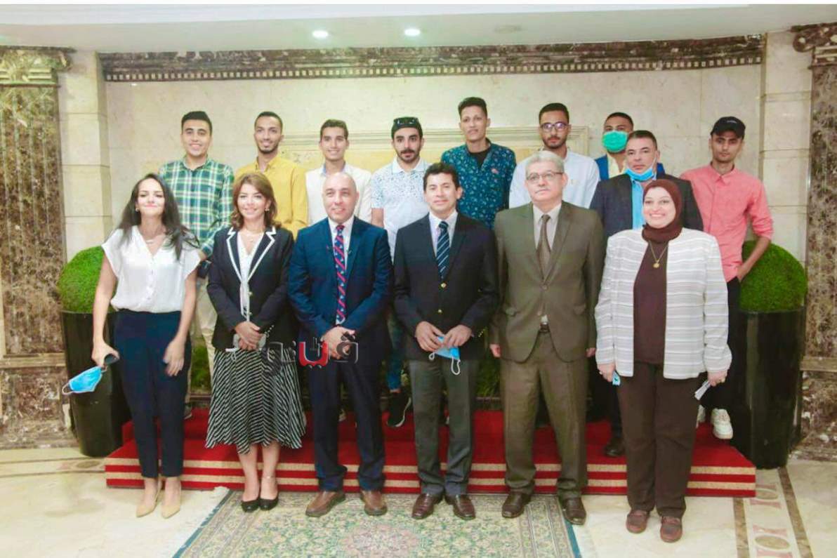 و وفد جامعة المنصورة برئاسة برئاسة إبراهيم فهمي مدير عام رعاية الطلاب و عبد الحميد الشبيني مدير الإدارة و محمد أباظة و شيماء الهواري و٢٨ طالب وطالبة من مختلف الكليات بالجامعة.