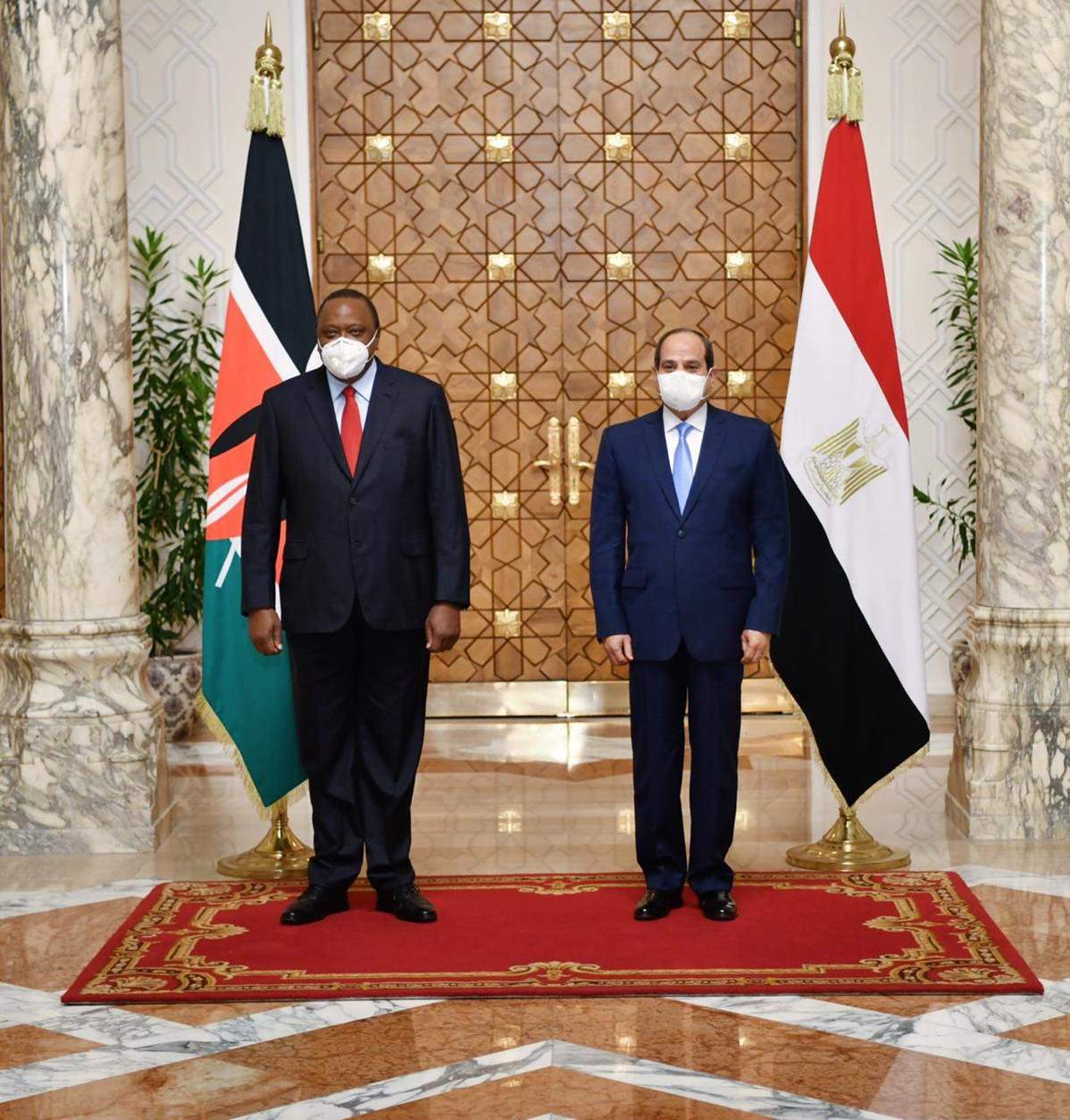 وصرح السفير بسام راضي المتحدث الرسمي باسم رئاسة الجمهورية بأن السيد الرئيس رحب بأخيه الرئيس كينياتا في مصر، معرباً عن التقدير للعلاقات التاريخية الوثيقة والتعاون المشترك ووحدة الرؤى التي تربط بين البلدين الشقيقين، ومؤكداً حرص مصر على تعزيز العلاقات وترسيخ التعاون الاستراتيجي مع كينيا في شتي المجالات.