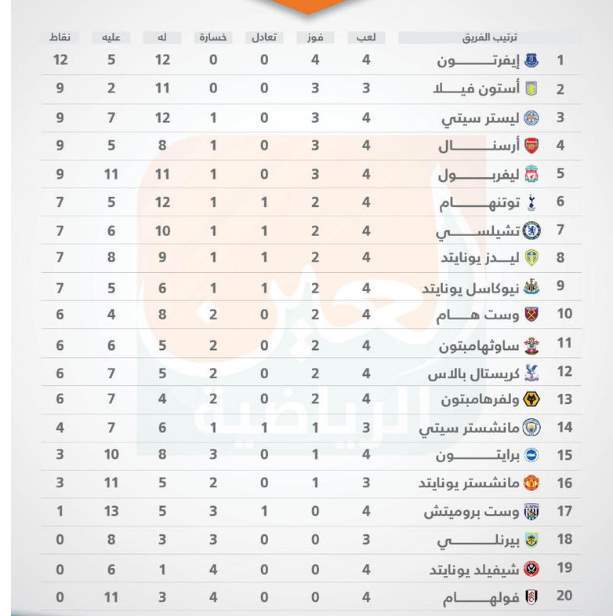 يذكر أن إيفرتون انفرد بصدارة ترتيب الدوري الإنجليزي (السبت) بعد فوزه الكبير على برايتون 4-2، وهو الرابع له من 4 مباريات في الموسم الحالي، ليصبح الوحيد الذي حصد العلامة الكاملة، ويحكم المسابقة وحيدًا حتى الجولة المقبلة على الأقل.