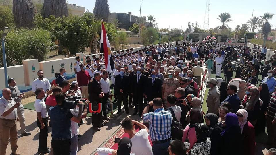 وقرأ الجميع الفاتحة على أرواح الشهداء، وسط عزف الموسيقى العسكرية لسلام الشهيد.