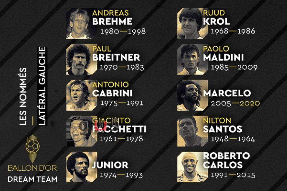 مارسيلو وروبيرتو كارلوس ونيلتون سانتوس وجونيور (البرازيل) وأندرياس بريمن وبول برايتنير (ألمانيا) ورودي كرول (هولندا) وباولو مالديني وأنطونيو كابريني وجاشينتو فاكيتي (إيطاليا).