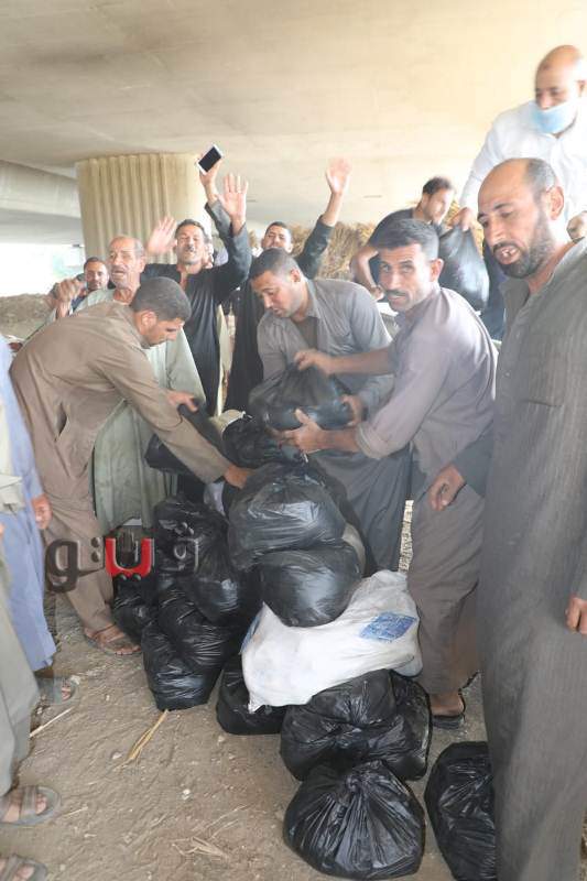 توزيع مواد غذائية ولحوم على المتضررين من ارتفاع منسوب مياه النيل بأشمون