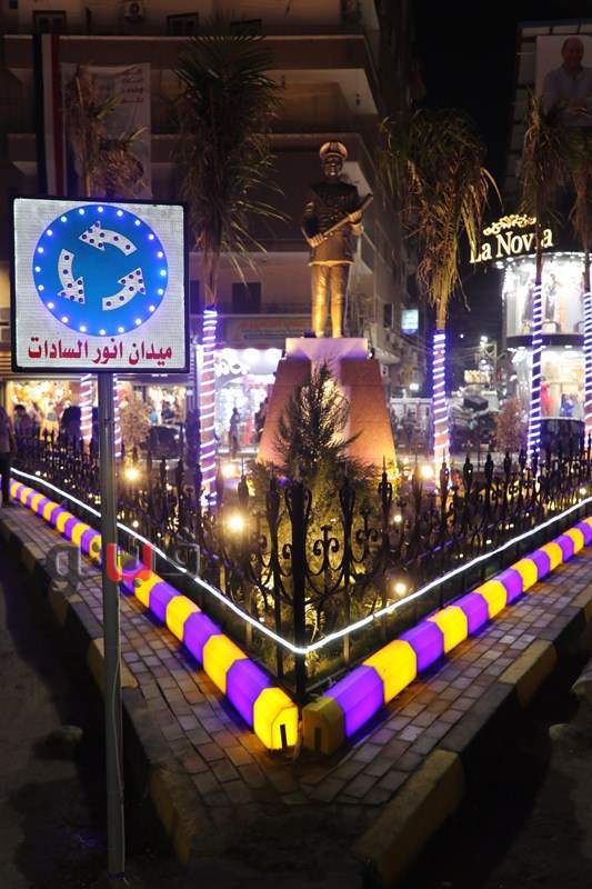 إضاءة منطقة تمثال السادات في المنوفية احتفالاً بذكرى انتصارات أكتوبر | صور