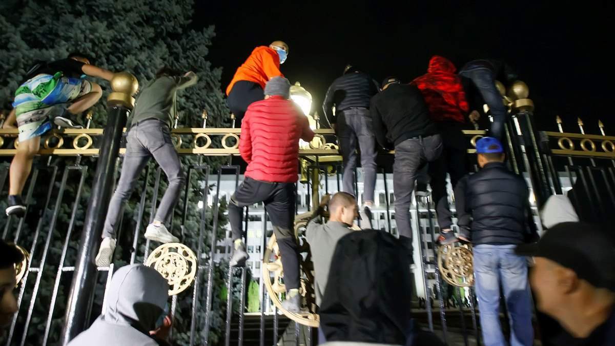وأتى اقتحام المبنى في أعقاب إصابة 120 شخصًا على الأقل، نصفهم من قوات الأمن، بجروح في صدامات دارت في العاصمة بشكيك بين الشرطة ومتظاهرين كانوا يحتجون على نتائج الانتخابات التشريعية التي جرت الأحد، بحسب السلطات الصحية في البلاد.