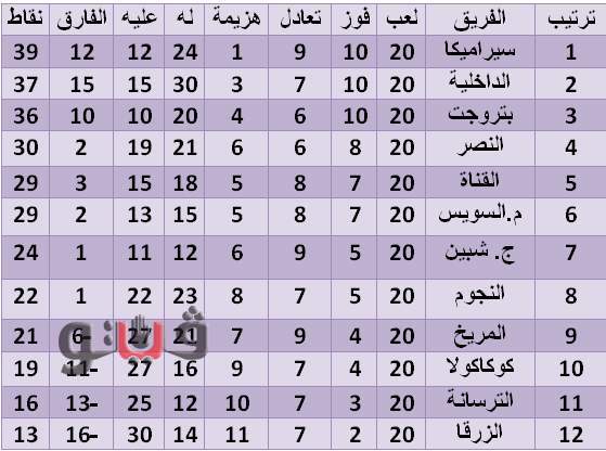 جدول ترتيب مجموعة القاهرة والقناة بدوري القسم الثاني بعد الجولة 20