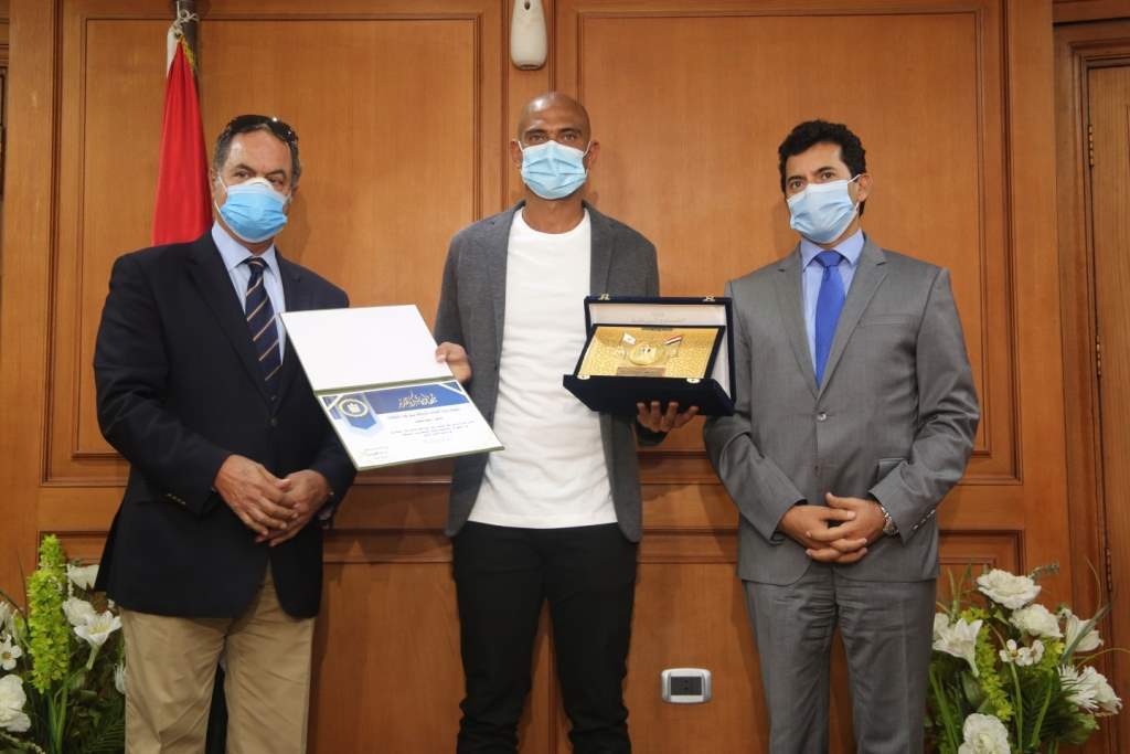 وأهدى الدكتور أشرف صبحي وزير الشباب والرياضة، درع وزارة الرياضة لميار شريف ومحمد صفوت بطلا التنس الأرضي، على هامش حفل تكريم الوزارة للثنائي عقب الإنجازات التى حققاها في الفترة الماضية.