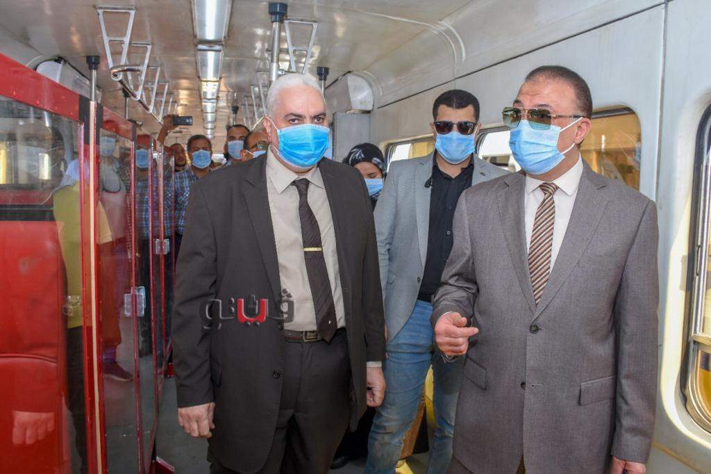 محافظ الإسكندرية يشهد تجربة إعادة تأهيل عربة ترام تاريخية