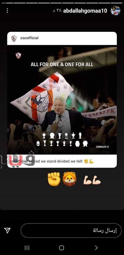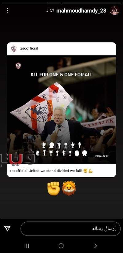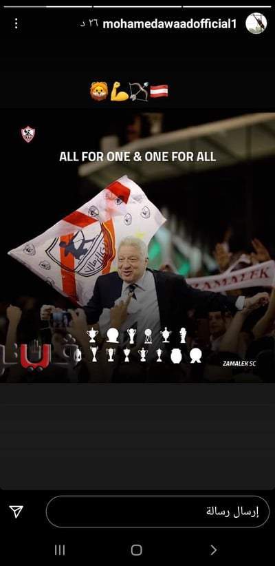 ونشر عدد كبير من لاعبي الزمالك أمثال محمودعلاء ومحمد عواد وعبدالله جمعة وحازم إمام صورة لرئيس نادي الزمالك لدعمه بعد قرار اللجنة الأولمبية.
