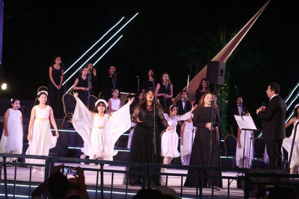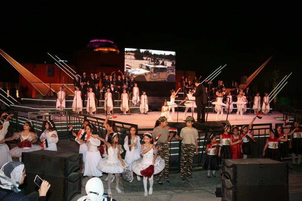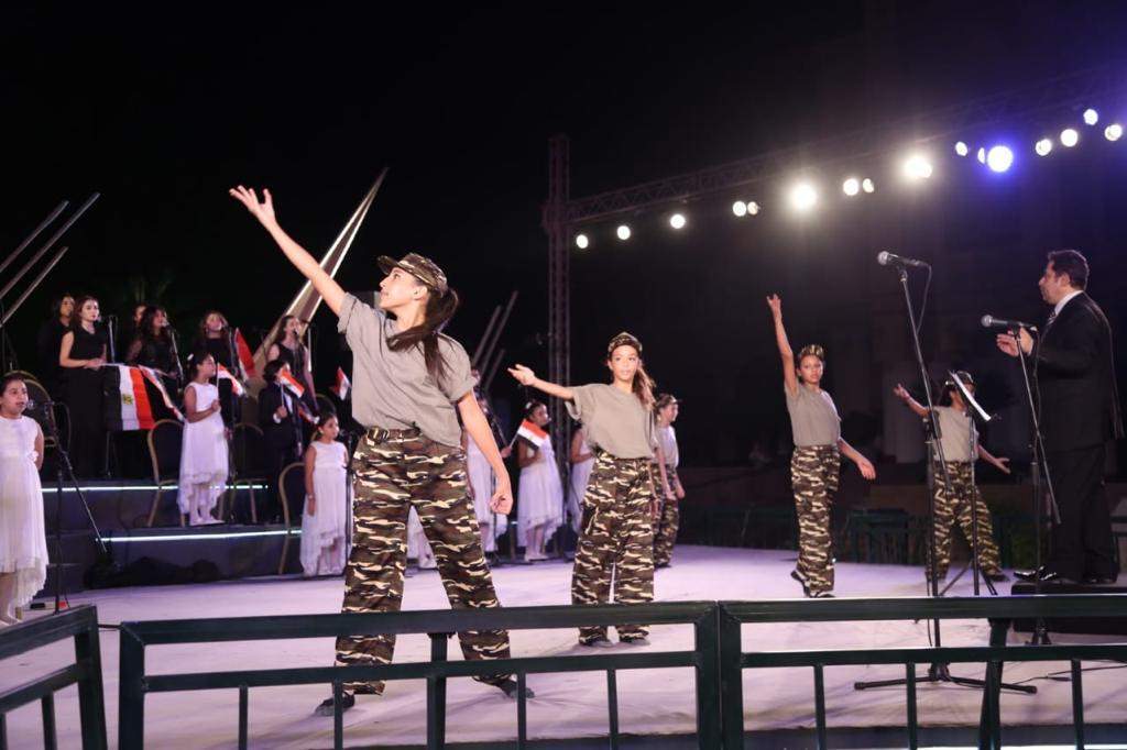 وكانت الاحتفالية قد تضمنت باقة مختارة من الأعمال الوطنية، كان منها النشيد الوطني، قوم يا مصري، يارايح على صحراء سينا، خلي السلاح صاحي، أحلف بسماها، رايات النصر، أغلى اسم في الوجود، واه يا عبد الودود، حلوة بلادي السمرة، حبيت بلدي، بسم الله، ع الدوار، دولا مين ودولا مين، سمينا وعدينا، عاش عاش ، نصر أكتوبر، المصريين اهمه، نصرة قوية ، تعيشي يا مصر ، وحياة رب المداين، أن كان علي القلب، عظيمة يا مصر ، مصر يا أم الدنيا، إذا مصر قالت ومصر هي أمي أداها كل من ماجدة الحسيني ، الاء الشربيني ، أحمد سامي ، محمد مصطفي، مصطفي ناصر ، مريم عادل، شادي جهاد ، أسماء الدسوقي، تامر نبيل ، مازن علوان ، نهاد فتحي ، ملك عادل، منه آمل، احمد سعيد ، غادة سليمان ، ريم محمد ، أحمد فريد ، محمد يسري ، احمد مجدي، رحمة ضاحي، أحمد السواحلي، يوسف حسن وسيليا محمد أصغر مطربة فى مصر وتبلغ من العمر 4 سنوات ونالت استحسان وإعجاب الحضور .