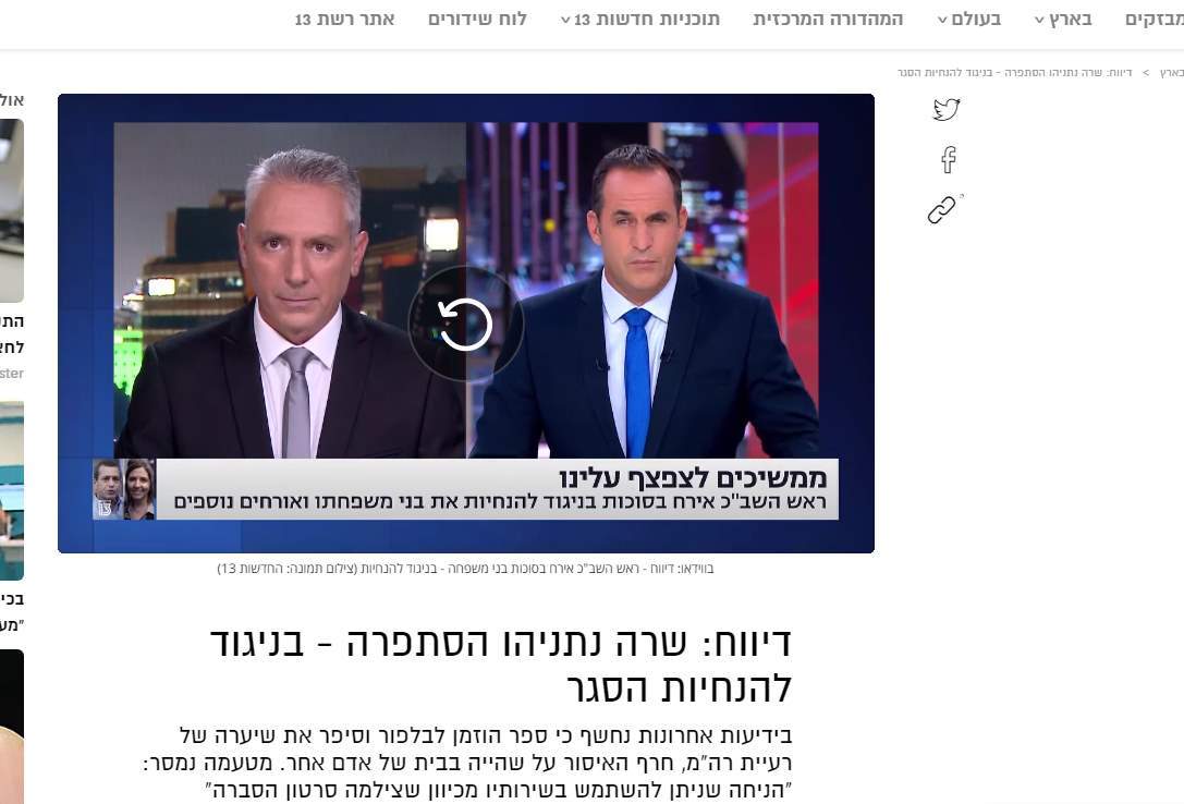 وأضافت :" سارة نتنياهو التزمت بقواعد رأس السنة والمكوث في المنزل ، وفي يوم الغفران صلت في الشارع القريب من المنزل، كما أن أي شخص يزور منزل رئيس الوزراء يشهد أن سارة نتنياهو لا ترتدي قناعًا داخل المنزل فحسب ، بل تطلب من الجميع القيام بذلك".