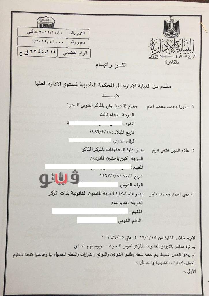 قضائية عليا إحالة مدير عام الإدارة القانونية بالمركز القومي للبحوث ومدير