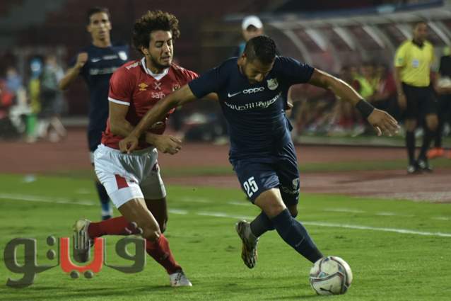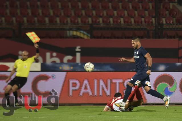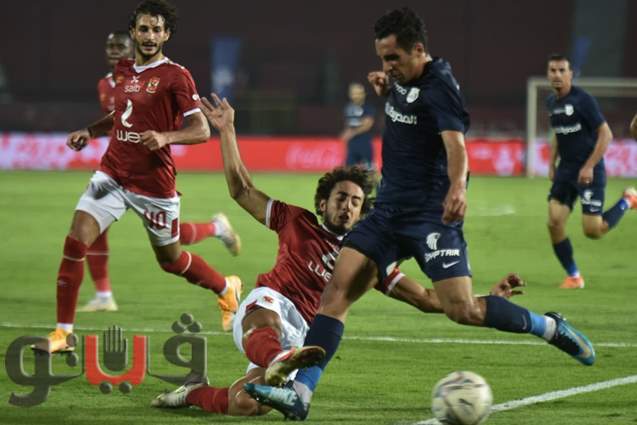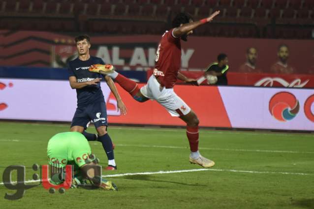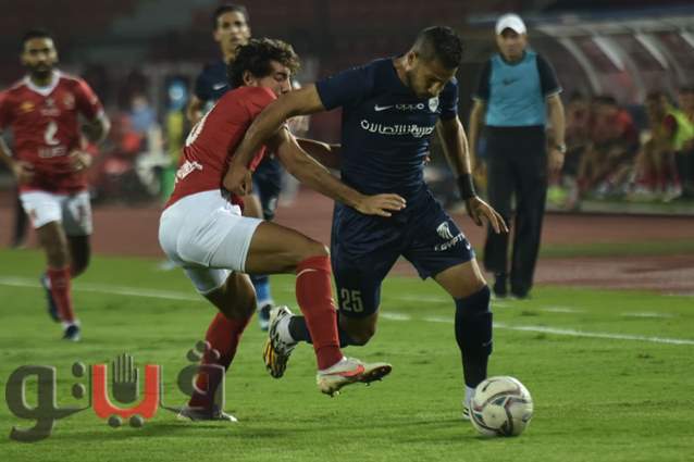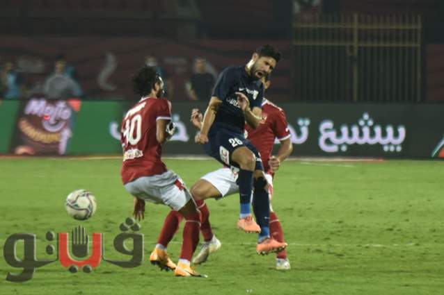 وطالب الأهلي بالحصول على ركلة جزاء بعد تدخل دفاعى ضد مروان محسن، ليتم اللجوء إلى تقنية الفيديو، قبل أن يشير الحكم باستئناف اللعب بصورة طبيعية.