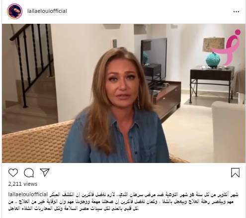 بثت الفنانة ليلى علوي فيديو للتوعية ضد مرض سرطان الثدي، مؤكدة أن شهر أكتوبر من كل عام هو شهر التوعية ضد مرض سرطان الثدي، وطالبت متابعيها بالكشف المبكر للتعجيل بالشفاء وتقليل فترة العلاج.