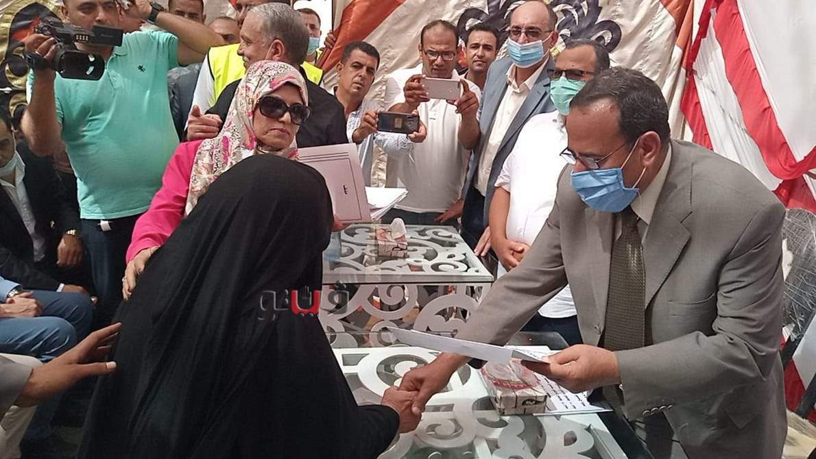 كما قام المحافظ يرافقه نائبه ووكيل وزارة الإسكان ورئيسي مدينتي الشيخ زويد ورفح بتوزيع عقود الوحدات السكنية على المنقولين من أهالي الشيخ زويد ورفح .