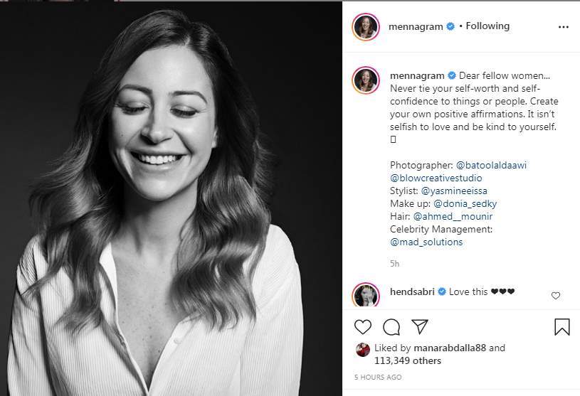 وعلقت منة شلبي على الصورة قائلة: "أيتها السيدات العزيزات، لا تربطن أبدًا قيمتكن الذاتية بالناس المحيطين بكن، اصنعن مواقفكن الإيجابية باستمرار، لأنه ليس من الأنانية أن تحببن أنفسكن وتكن لطيفات معهن".