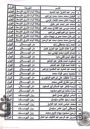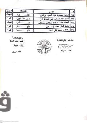 أعلنت لجنة القيد بنقابة الصحفيين برئاسة خالد ميري، عن نتيجة لجنة المشتغلين التي انعقدت على ثلاثة أيام بداية شهر سبتمبر الماضي.