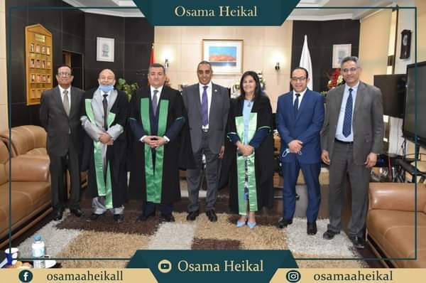 ترأس لجنة المناقشة الأستاذ الدكتور بركات عبد العزيز، الأستاذ بقسم الإذاعة والتليفزيون بالكلية ( مشرفا ورئيسا)، وضمت اللجنة كل من الأستاذة الدكتورة هويدا مصطفى، عميد كلية الإعلام جامعة القاهرة ( مناقشا )، والأستاذ أسامة هيكل، وزير الدولة للإعلام ( مناقشا ).