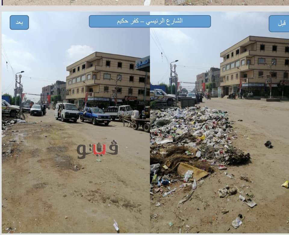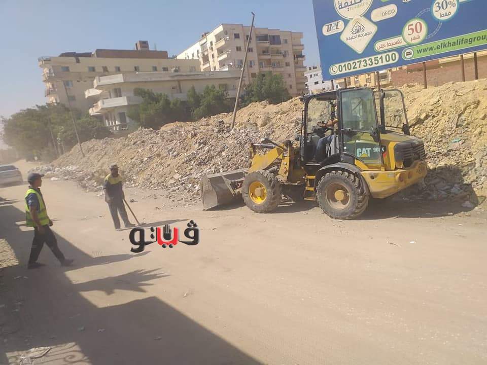 رفعت فرق النظافة والتجميل بكرداسة مخلفات القمامة من الشارع الرئيسي بكفر