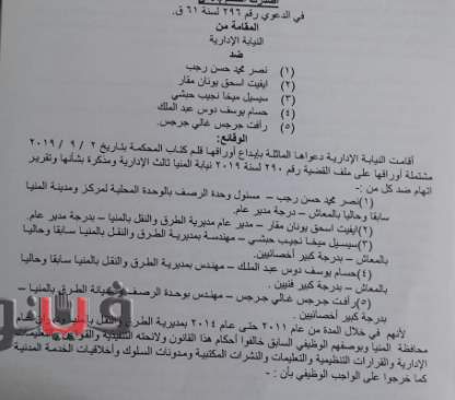 قضت المحكمة التأديبية العليا بمجلس الدولة ببراءة 4 مسئولين بمديرية الطرق والنقل بمحافظة المنيا ورئيس وحد الرصف بالوحدة المحلية لمركز ومدينة المنيا بعد ثبوت عدم إرتكابهم مخالفات مالية وإدارية ولم يتسببوا في إلحاق أضرار مالية لجهة عملهم.